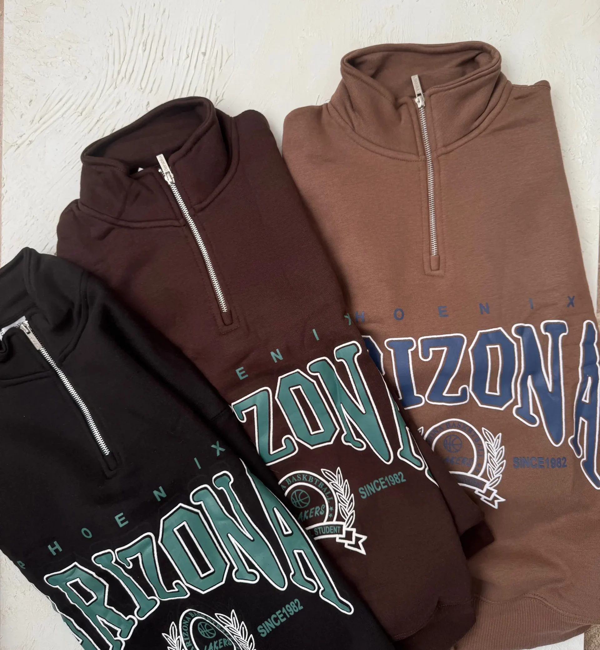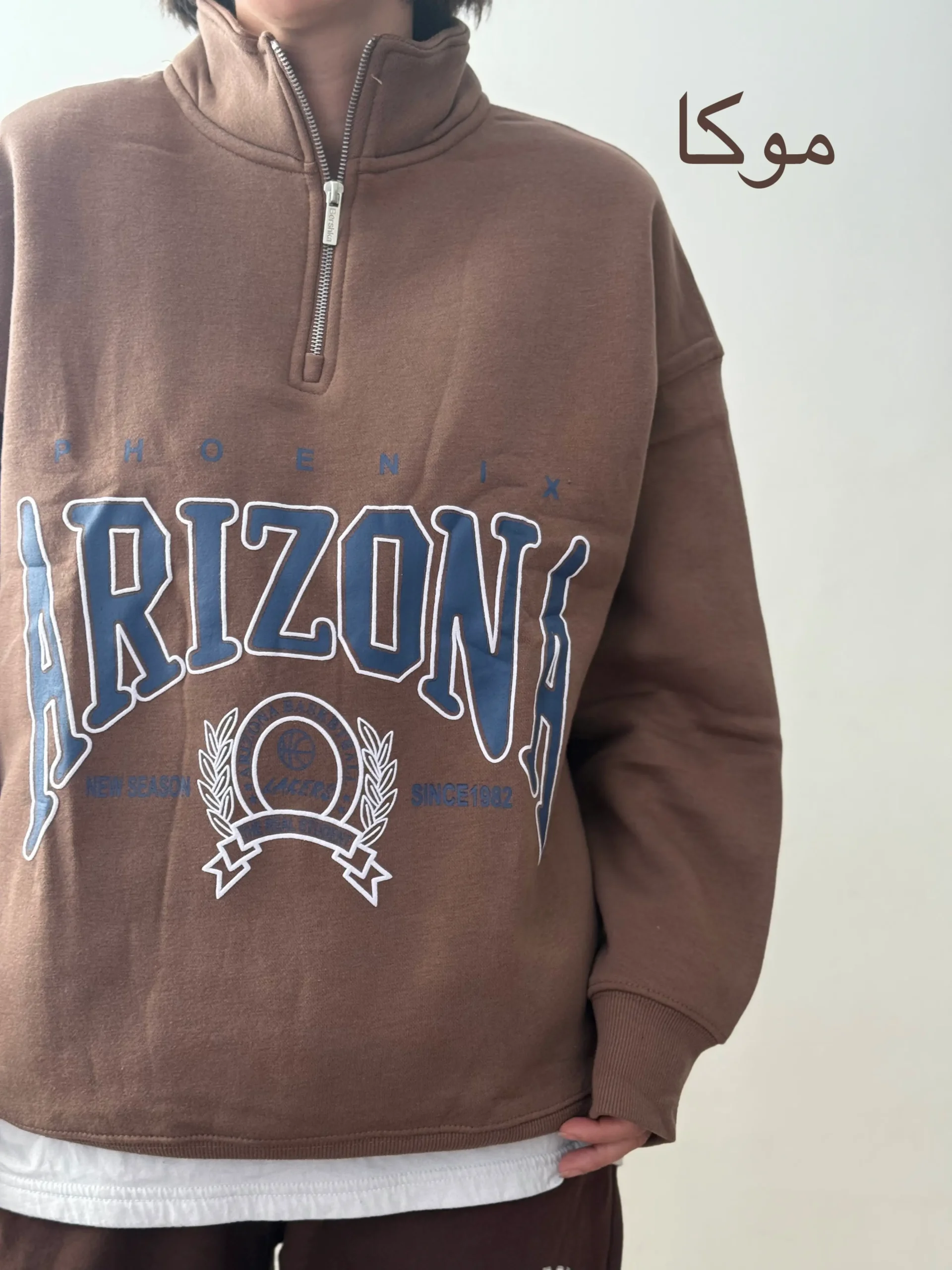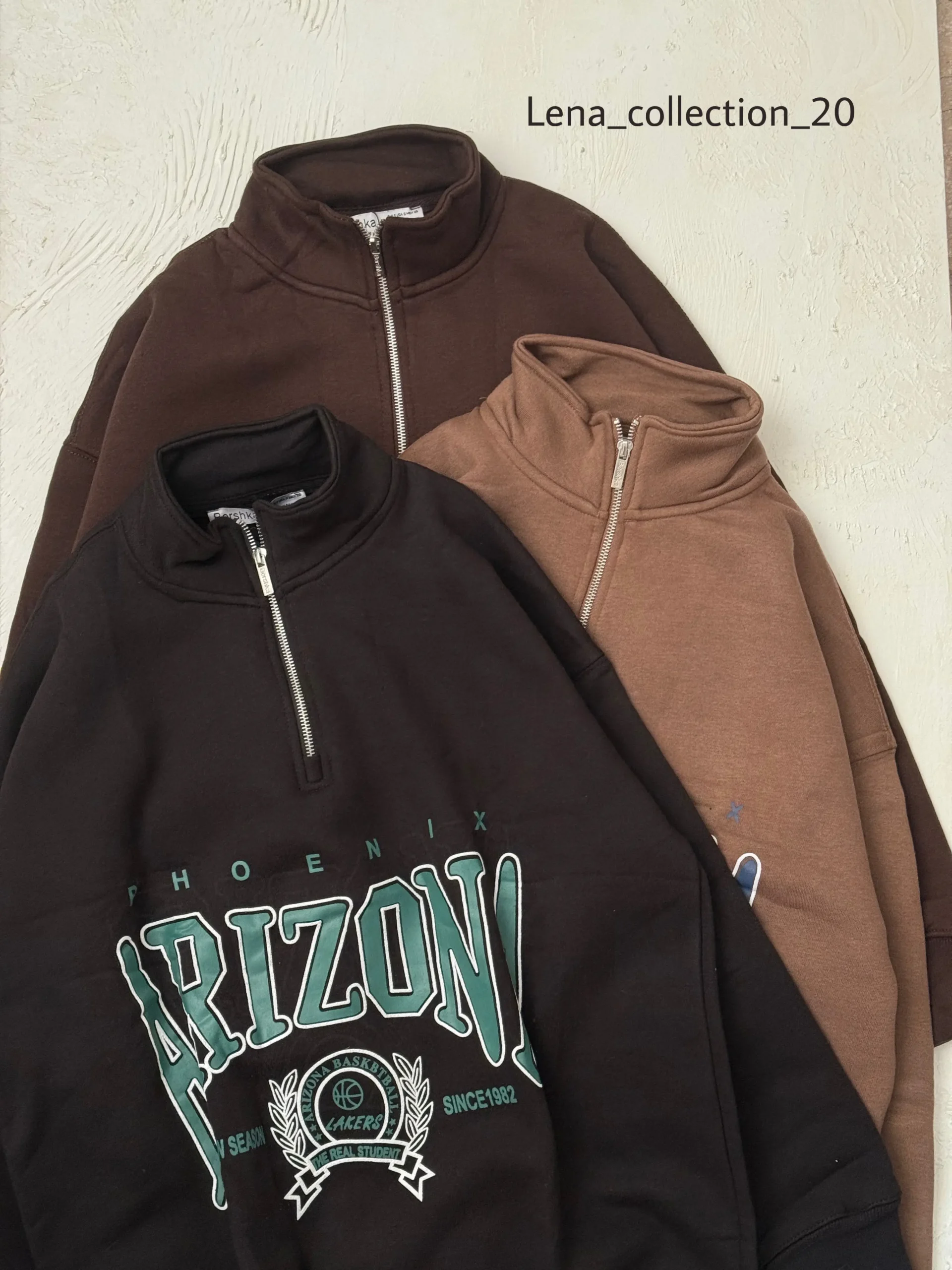 سوییشرت نیم زیپ آریزونا یونیسکس اورسایز وارداتی جنس دورس سه نخ توکرک ، صد درصد نخ داخل کرک باطراحی ساده و زیبا . انتخابی مناسب برای استایل های روزمره و نیمه رسمی است . این سوییشرت ازجنس نخ با کیفیت بالاتولید شده که به شما راحتی وظاهری شیک میبخشد.
